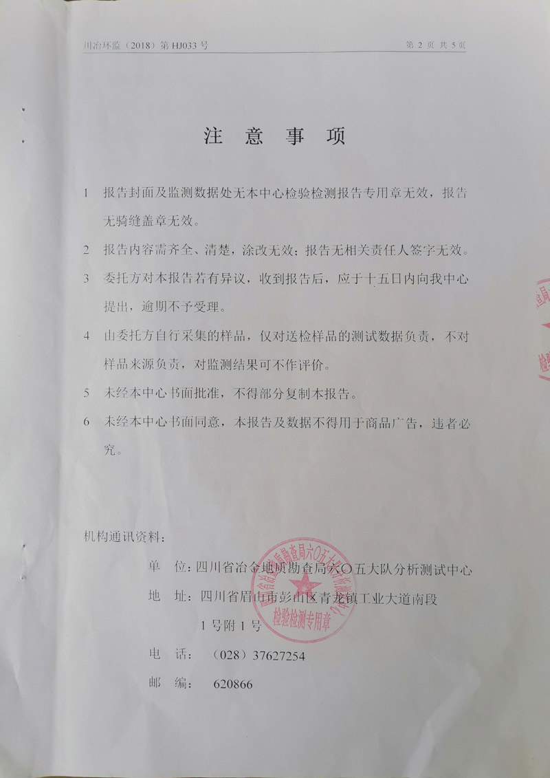 監(jiān)測機構(gòu):四川省冶金地質(zhì)勘查局六0五大隊分析測試中心