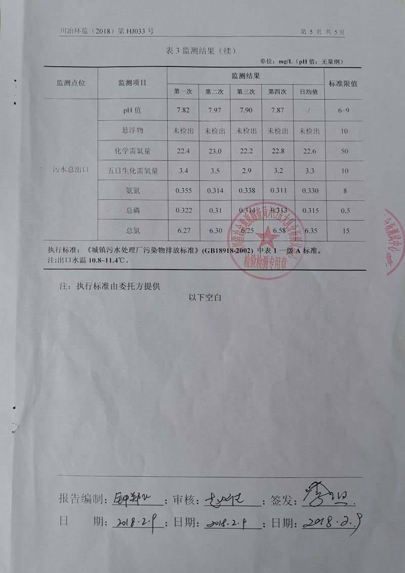 設計規(guī)模:10000m3/d,詳細檢測報告見附件。