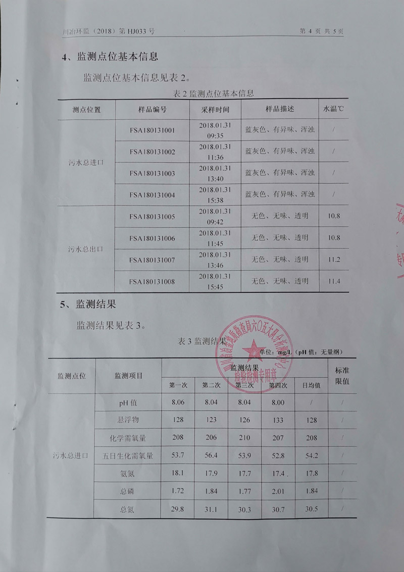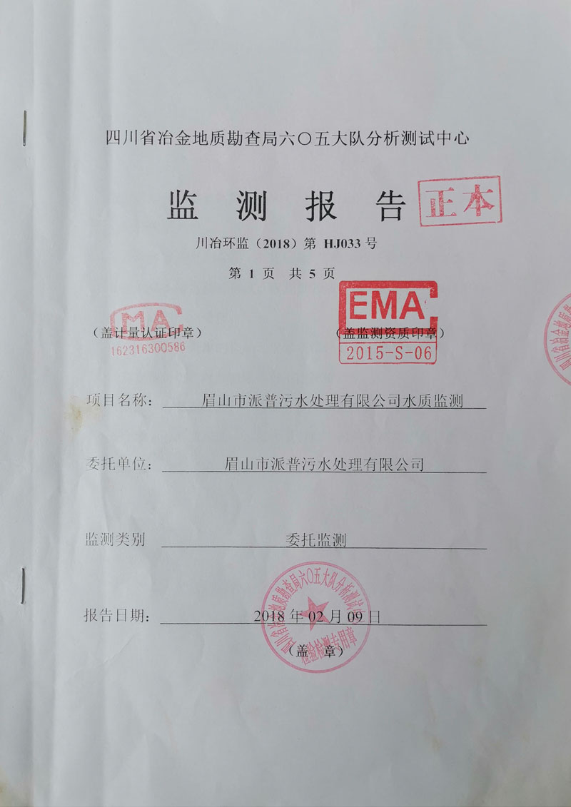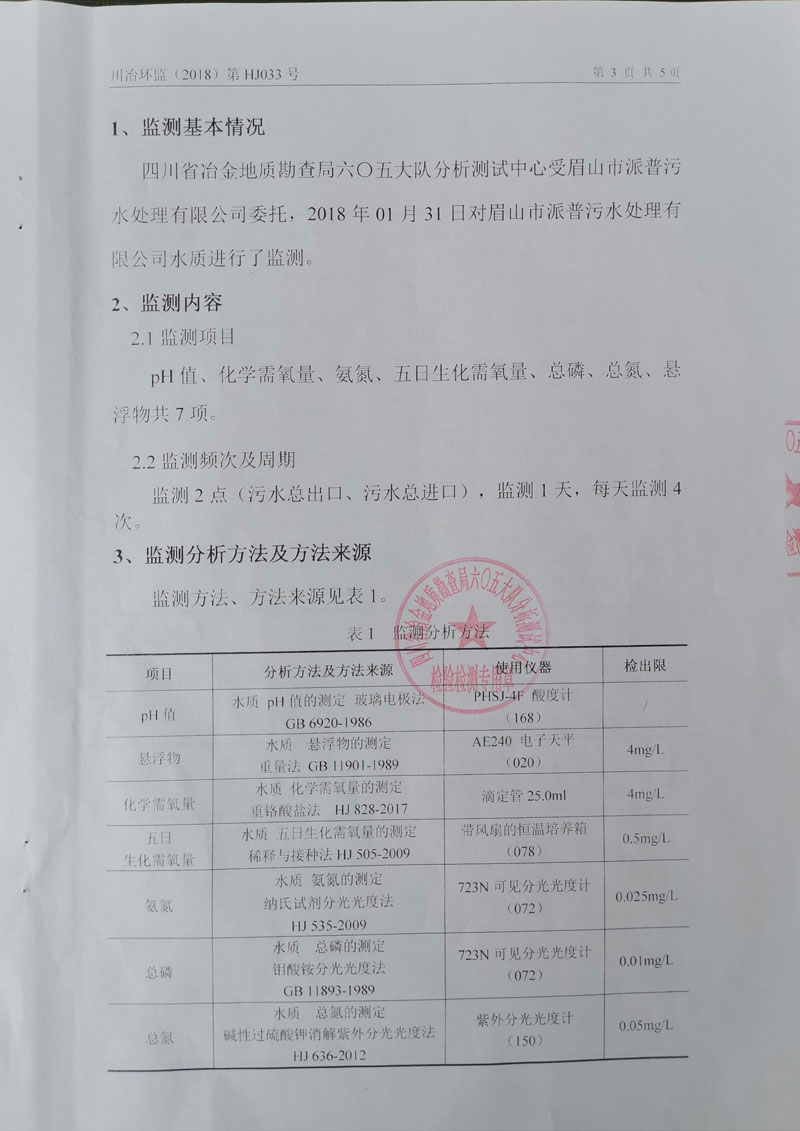 根據(jù)環(huán)保法律法規(guī)要求企業(yè)環(huán)境信息公開,現(xiàn)將眉山市派普污水處理有限公司污水處理廠2018年1月第三方檢測機構(gòu)檢測數(shù)據(jù)公示如下: