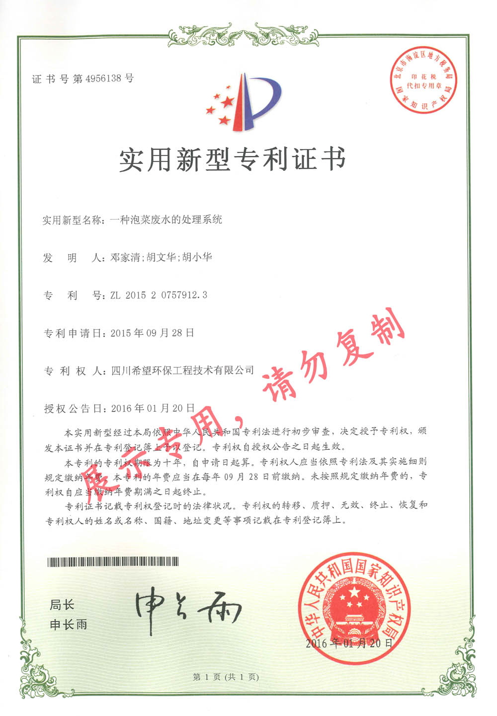 - 下一篇:實(shí)用新型專利證書(非均相芬頓反應(yīng)器) 2016/5/3