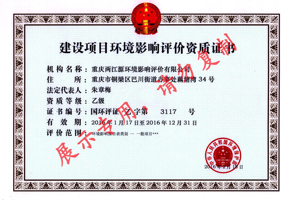 重慶兩江源環(huán)境影響評價有限公司是我公司的下屬公司。