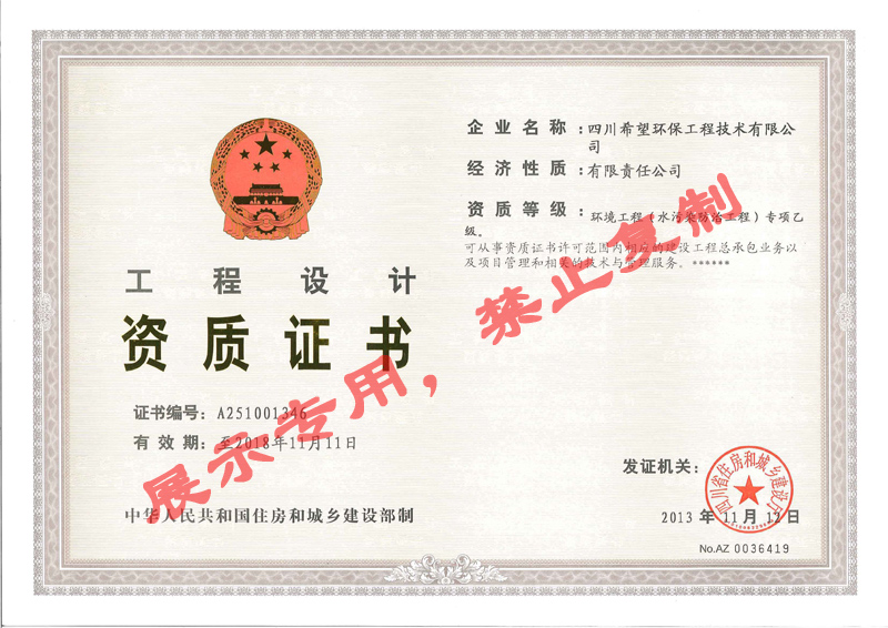 我公司擁有環(huán)境工程(水污染防治工程)專項乙級設(shè)計證書,可承接各種工業(yè)廢水和生活廢水